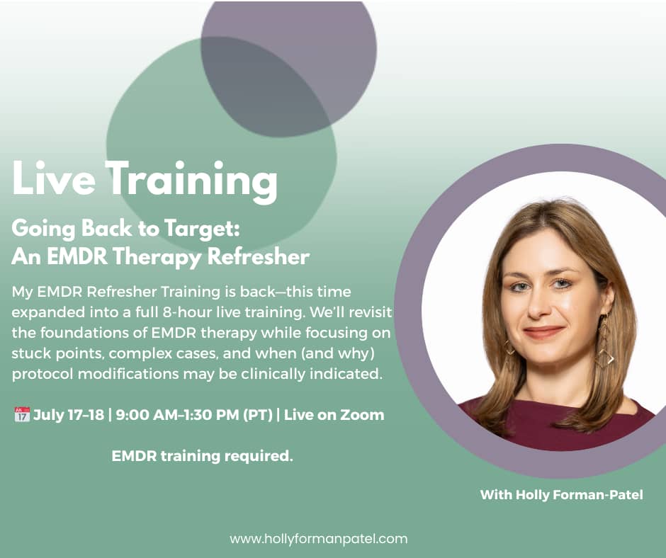 This eight-hour training, which includes EMDRIA Credits, focuses on reviewing all things EMDR therapy, from the phase 8 phases and three prongs to how to navigate different stuck points. You will walk away with a clear understanding of what constitutes the standard protocol and clinical reasons why one might need to modify the protocol.